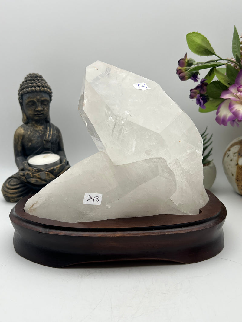 Gorgeous Brazilian Lemurian with Wood Base. 6.5” tall & 8” long (in base).