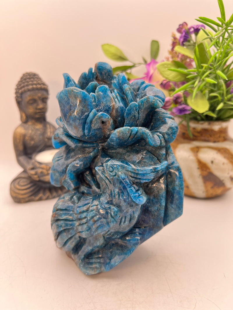 Stunning Blue Apatite Bird and Flower Carving. 1.77 KG. $259 CAD. Layaway option available.