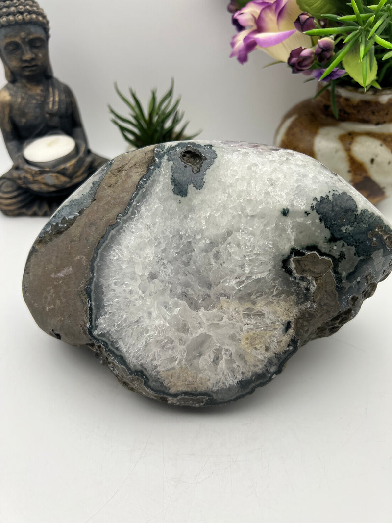 Sugar Druzy Amethyst geode from Brazil. 8” long x 5” deep. 2.4 kg.